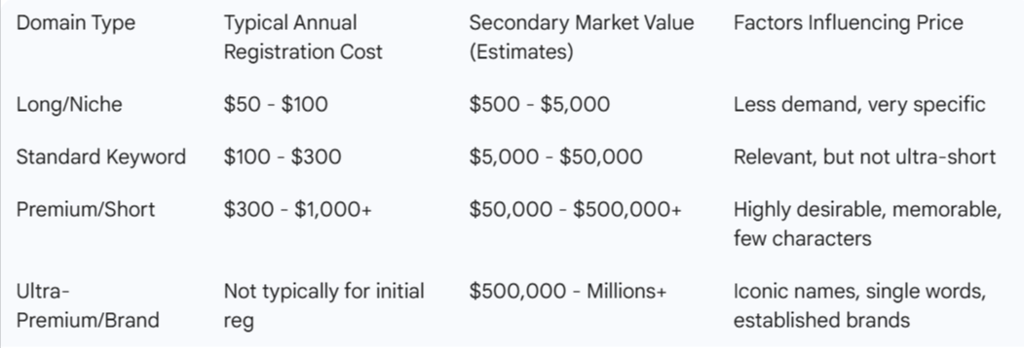Illustrative AI Domain Pricing Ranges (Approximate)